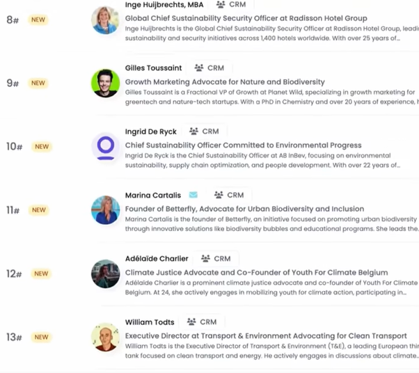 Classée 11ᵉ des personnalités environnement les plus influentes sur LinkedIn en Belgique.